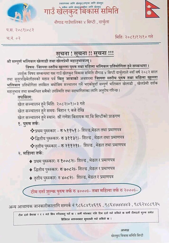 बिसुपर्व सकिएलगत्तै सिप्टिमा भलिबल प्रतियोगिता सुरु