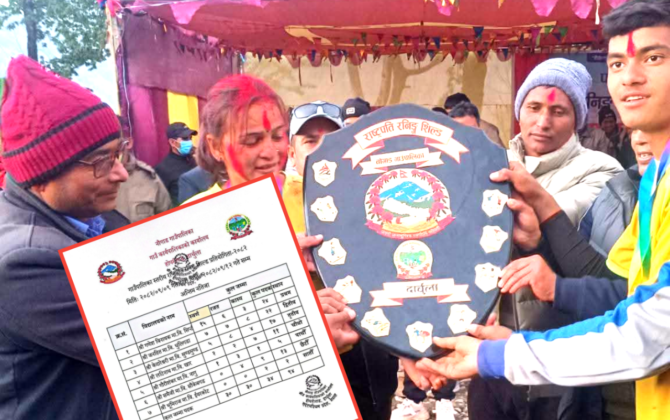 पुरा पढ्नुहोसदार्चुला।नौगाड गाउँपालिकाको पालिका स्तरीय राष्ट्रपति रनिङ शिल्ड प्रतियोगिता -२०८२ सम्पन्न भएको छ। पुष -०९ देखि १२ गतेसम्म सन्चालन भएको उक्त प्रतियोगितामामा पालिका भरीका ७ वटा विद्यालयहरुको सहभागिता रहेको थियो। जसमा १५ स्वर्ण ६ रजत...