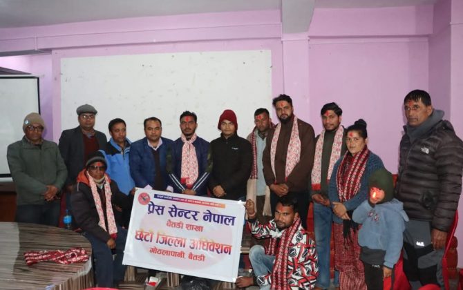 पुरा पढ्नुहोसप्रेस सेन्टर नेपाल डडेल्धुराको अध्यक्षमा पुन: भिमबहादुर खत्री सर्वसम्मत चयन२६ पुस २०८१, दार्चुला।प्रेस सेन्टर नेपाल डडेल्धुराको अध्यक्षमा पुनः भीमबहादुर खत्री चयन भएका छन्। जोगबुडामा बिहीबार सम्पन्न छैठौं जिल्ला सम्मेलनबाट खत्री सर्वसम्मत अध्यक्ष चुनिएका हुन्।जिल्ला...