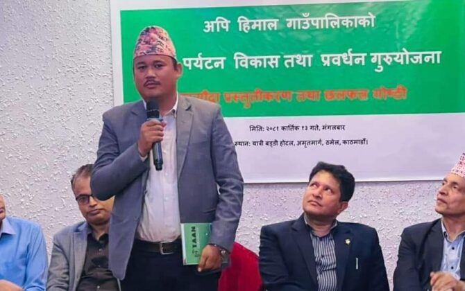 पुरा पढ्नुहोसअपिहिमालको पर्यटन विकास तथा प्रवर्धन गुरु योजना अन्तिम चरणमा : भगतसिंह ठेकरे १३ कार्तिक, दार्चुला।जिल्लाको अपिहिमाल गाउँपालिकाको पर्यटन विकास तथा प्रवर्धन गुरु योजनाको अन्तिम प्रस्तुतिकरण एवम् सरोकारवाला हरुसंगको छलफल कार्यक्रम सम्पन्न भएको छ।काठमाडौं ठमेल...