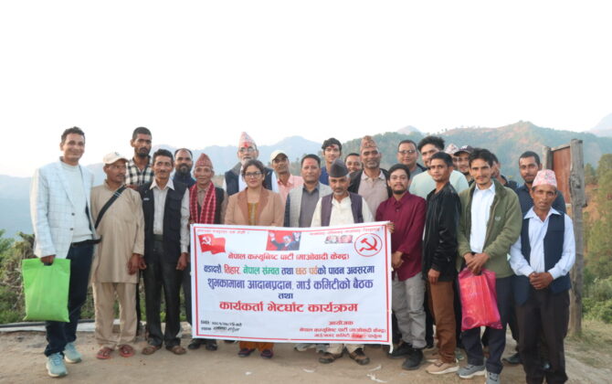पुरा पढ्नुहोसलेकममा माओवादीको कार्यकर्ता भेटघाट कार्यक्रम सम्पन्न, ४ जनाले गरे पार्टी प्रवेश ०८ कार्तिक , दार्चुला।नेकपा (माओवादी केन्द्र) लेकम गाउँकमिटीको आयोजनामा आयोजित दशैं, शुभदिपावली, छठ एवम् नेपाल संवतको अवसरमा शुभकामना आदानप्रदान कार्यक्रम सम्पन्न भएको छ।...