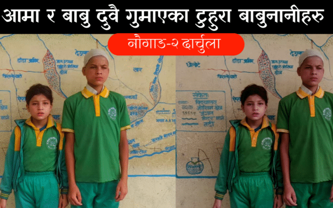 पुरा पढ्नुहोसहरि प्रसाद जोशी, दार्चुला | गतिशील न्यूज १९ श्रावण २०८२।दार्चुला जिल्लाको नौगाड गाउँपालिका–२ कुलाबान खोलामा एकै परिवारका तीन बालबालिका आमाबुबा दुवै गुमाएर कठिन जीवन संगर्षमा छन्। अन्दाजी १३ वर्षिय सुरेश लुहार, ११ वर्षिय पुस्कर...